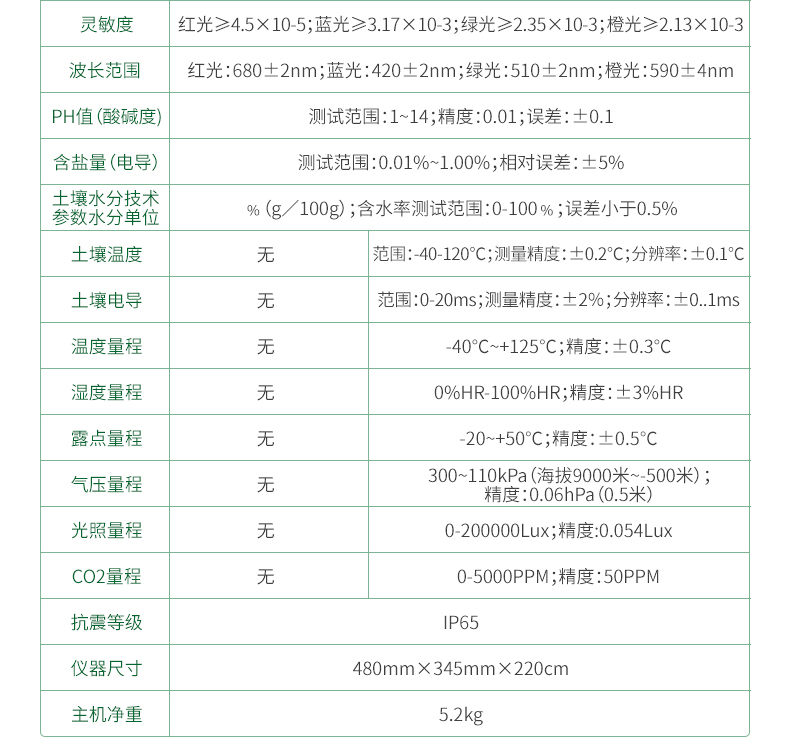 12.土壤溫度:范圍:-40-120℃;測量精度:±0.2℃;分辨率:±0.1℃
