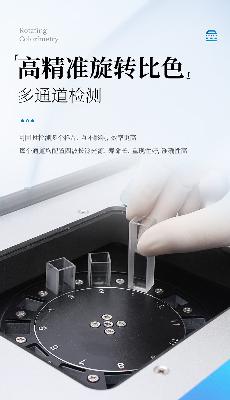 2、采用精密旋轉比色池設計,光源一致性更加精確,保證檢測精度。